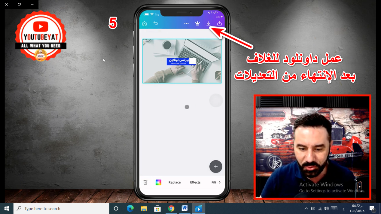 - بعد الإنتهاء من كافة التعديلات التي قمت بها على الغلاف يمكنك عمل داونلود لصورة الغلاف وحفظها على هاتفك.