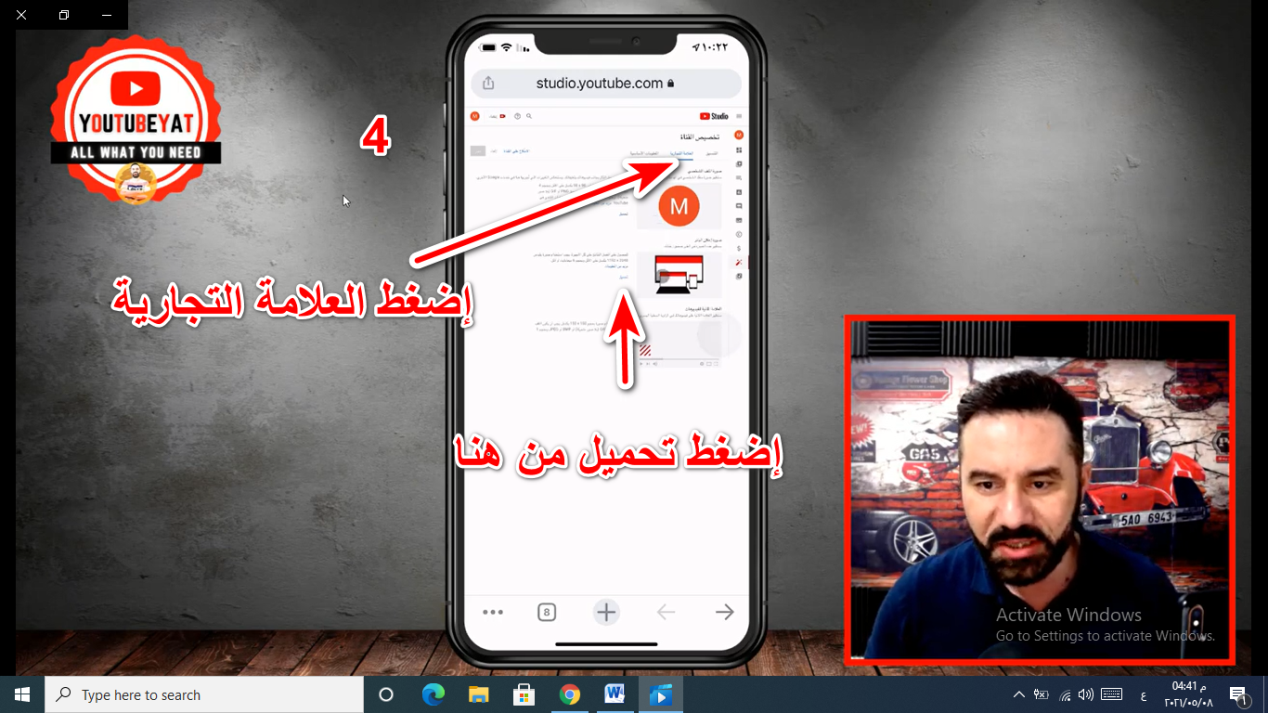 - إضغط على إختيار (العلامة التجارية) ثم إضغط على (تحميل) في غلاف القناة.