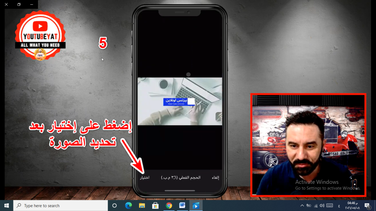 - إضغط على إختيار (مكتبة الصور) ثم إختر الصورة التي تريدها ثم كلمة (إختيار) ثم (تم).