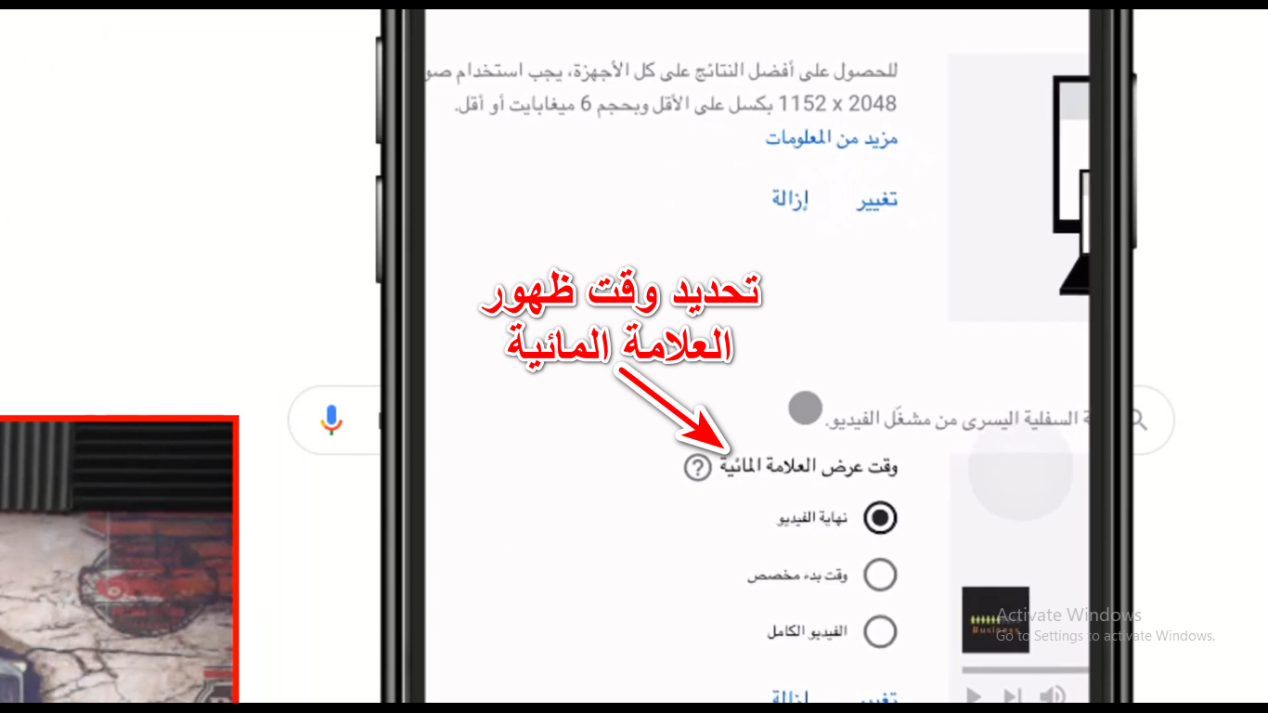 وظهورها ليكون في نهاية الفيديو، أو تحديد وقت بدء مخصص، أو ظهورها في الفيديو بالكامل.