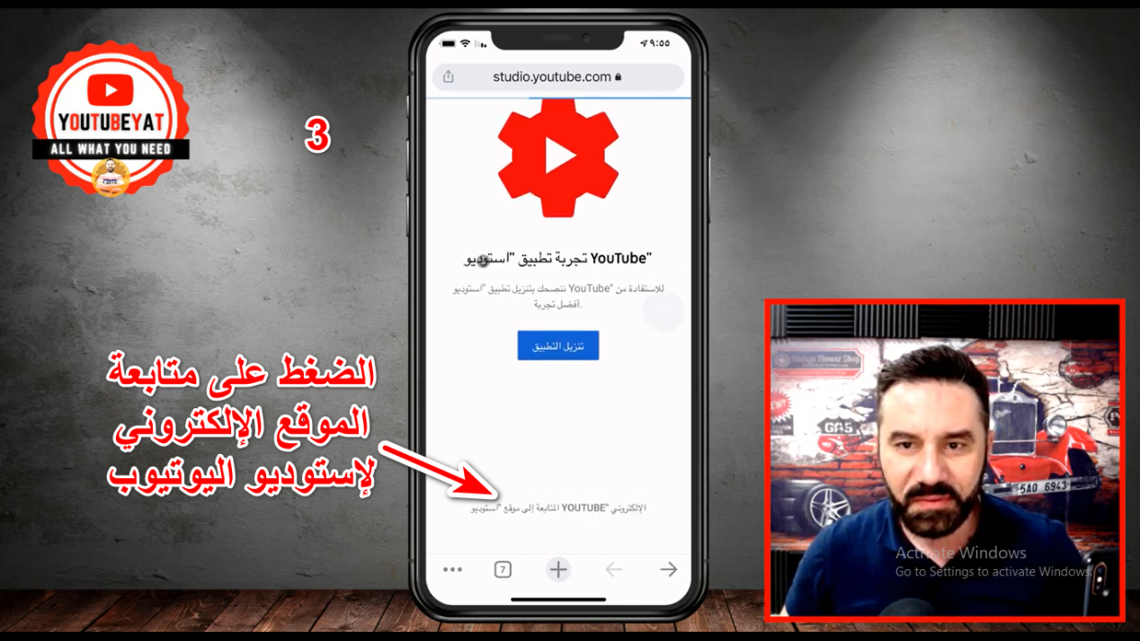 3-إضغط على (متابعة الموقع الإلكتروني لإستوديو اليوتيوب).
