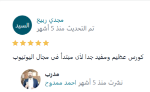نعم هناك يوتيوبر رائعين ولديهم محتوى قيم سواء كان عربي ام أجنبي واعتقد انك شاهدت معظمهم ولكن لن تجد ترتيب الأفكار على اليوتيوب والأدوات والمصادر الموجودة في هذا الكورس وأيضا لن يكون هناك دعم شخصي لك على جروب خاص على الفيس بوك.